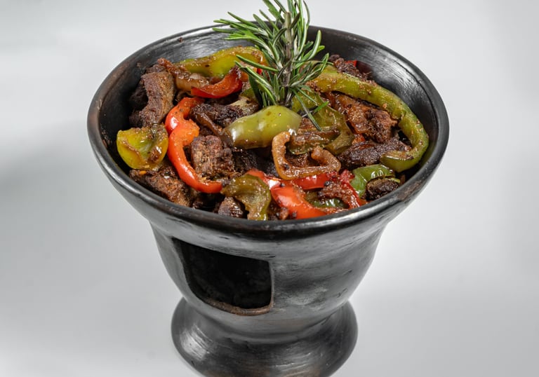 Tender cubes shoulder of beef, rubbed with chef's blend of Ethiopian seasonings and stir-fried with onions, green, red pepper, fresh rosemary, and garlic. (Can be made spicy or mild).
